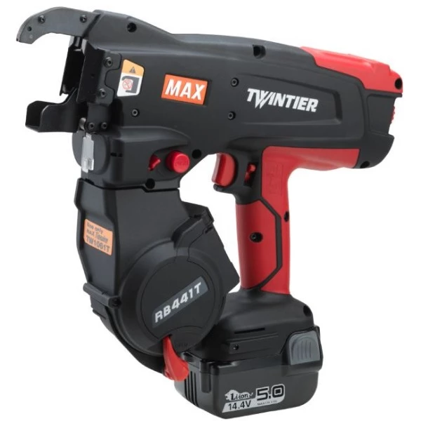 - Dankzij de grote bekopening kan de TwinTier tot 22mm x 22mm betonstaal vlechten